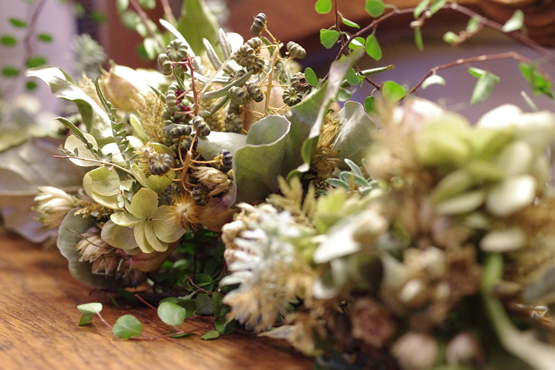 フレッシュな草花が少しずつドライへと移り変わり、長く楽しめる表情豊かな