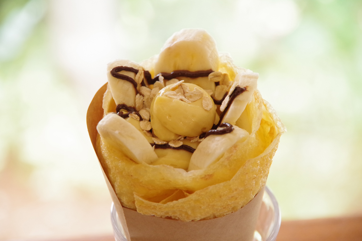 まずはこの一枚を。完熟バナナの甘みと、特製チョコソースの完璧なマリアージュ。